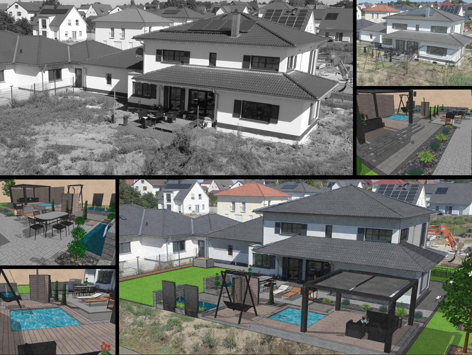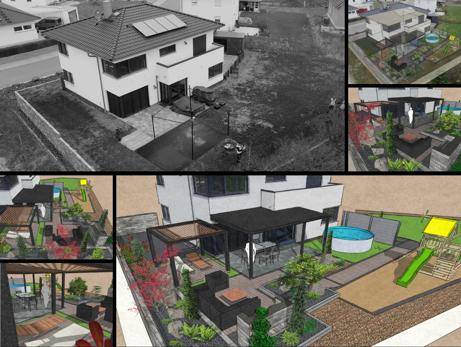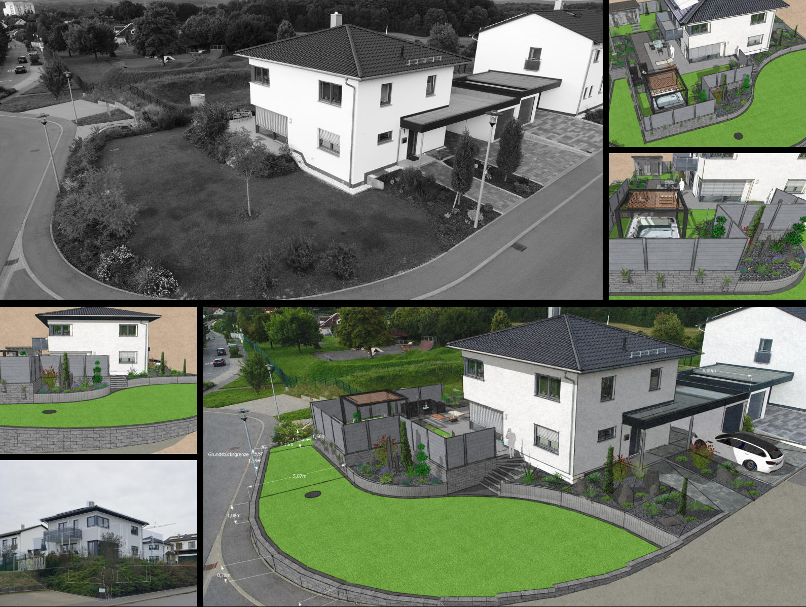 mit dem datenbasierten Geländeprofil und unserer langjährigen praktischen Erfahrung im Gartenbau ein detailgetreues, realistisches 3D-